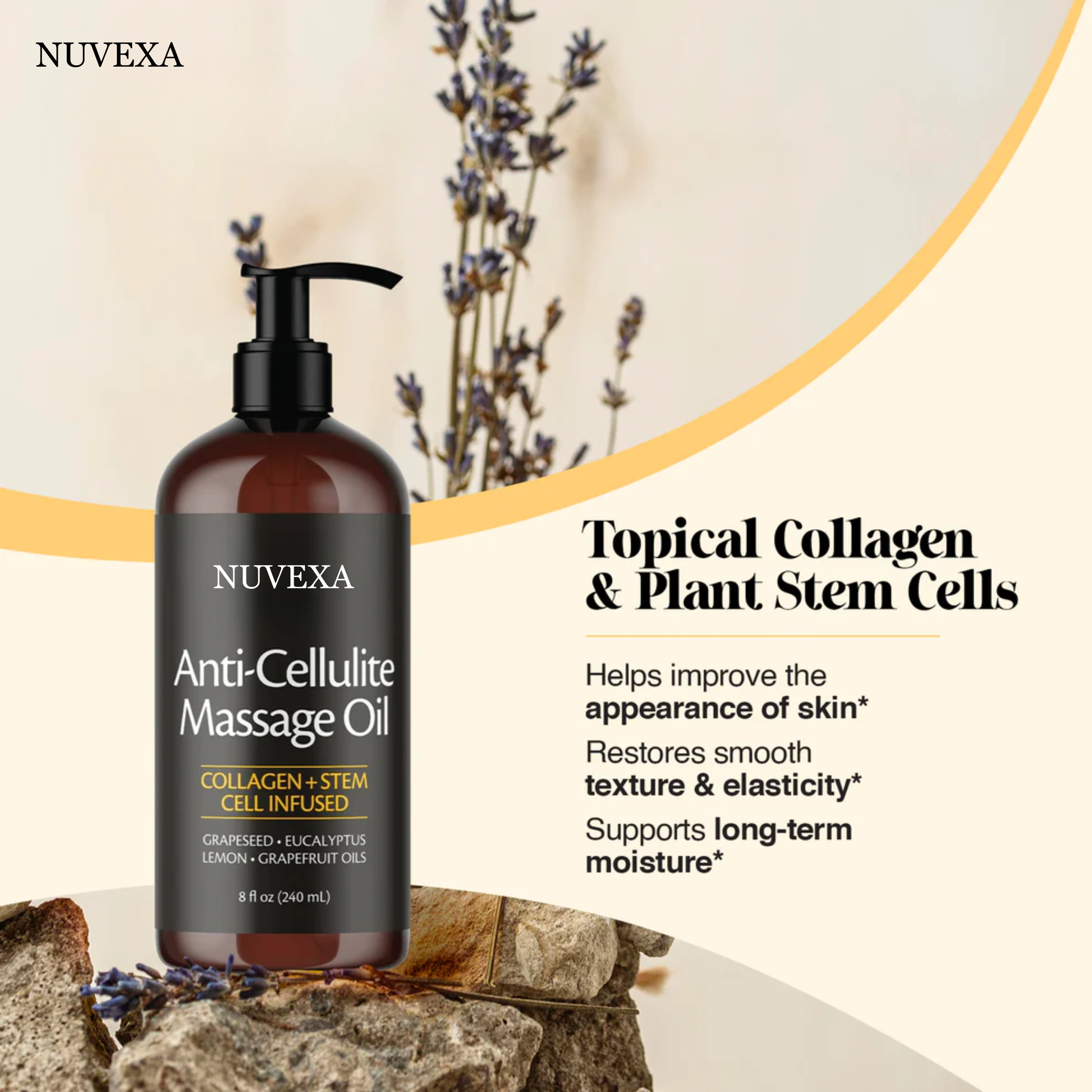 The Cellulite Massage Oil helps to stimulate circulation, break down fat deposits, and tighten skin, reducing the appearance of cellulite.